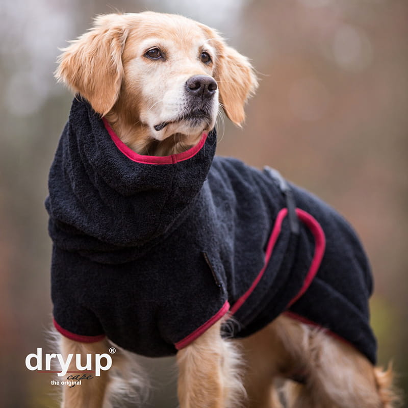 Original DRYUP CAPE Hundebademantel aus 100 % Baumwoll-Frottee. Ohne statische Aufladung.