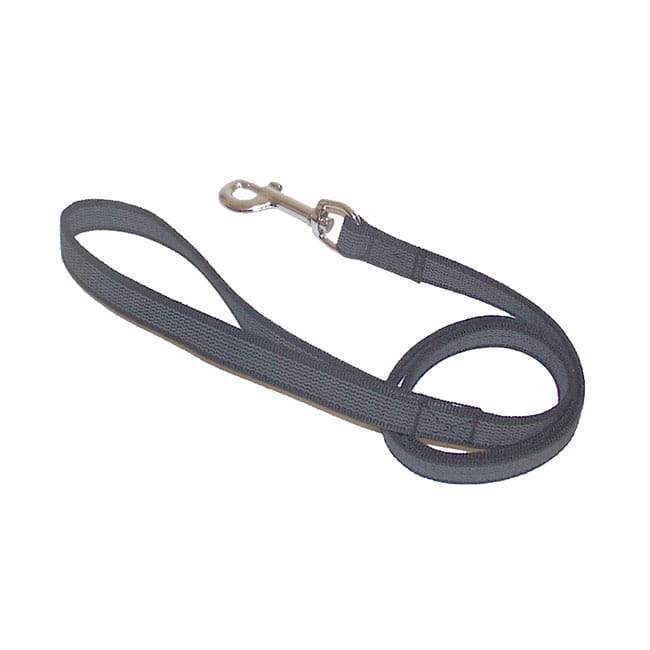 In das schwarze Nylonmaterial sind graue Gummifäden eingewebt. Dadurch erhalten diese Leinen eine extrem gute Giffigkeit, auch bei feuchter Witterung. Mit bewährtem Karabinerhaken von der Firma Herm. Sprenger.