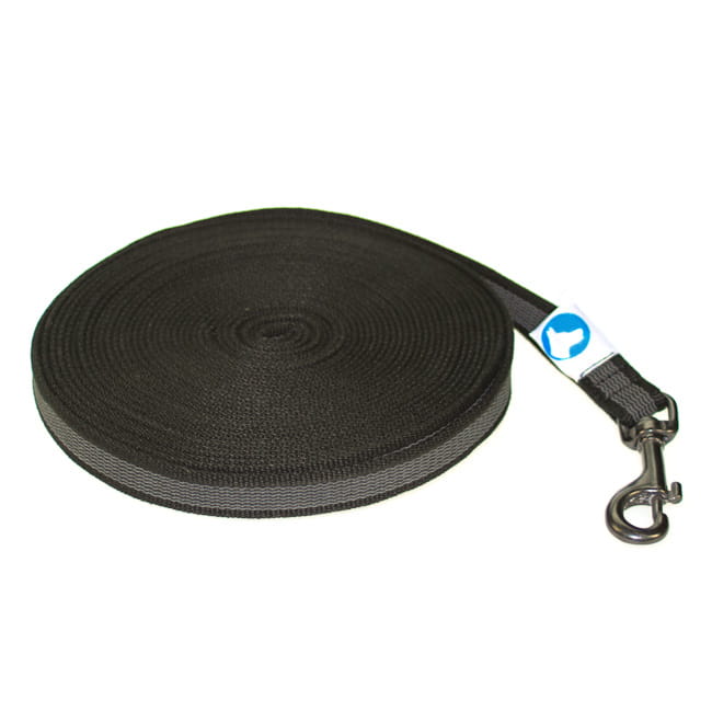 Produktinformationen "Gummierte Leine schwarz breit 10m mit HS INOX"