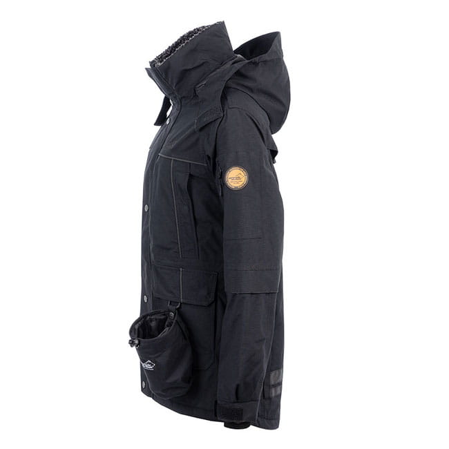 Original Jacke von Arrak bestehend aus Oxford-Nylon. Die Jacke hat eine Wassersäule von 10.000 mm und ist vollständig verschweißt, mit Reflektoren an den Armen und einer herausnehmbaren Leckerlitasche.