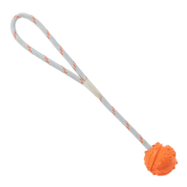 Motivations-Spielzeug aus Naturgummi. Ball am Seil schwimmend.