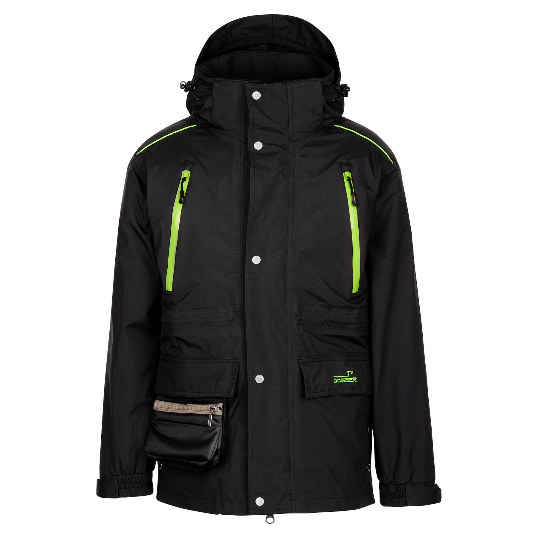 Ein besonderes Extra für Hundesportler ist das abtrennbare Goody-Bag, das sich links oder rechts an der unteren Außentasche befestigen lässt. Es bietet schnellen Zugriff auf Belohnungen oder Kleinteile und kann bei Bedarf auch in der Tasche verstaut werden – ideal für strukturiertes Training, Prüfungen und den Alltag mit mehreren Hunden. Mit ihrem funktionalen Schnitt, der sportlichen Optik in Schwarz und dem durchdachten Taschensystem ist die DOGGER Jacke Goma die ideale Wahl für alle, die im Hundesport Wert auf Komfort, Organisation und maximale Wettertauglichkeit legen.