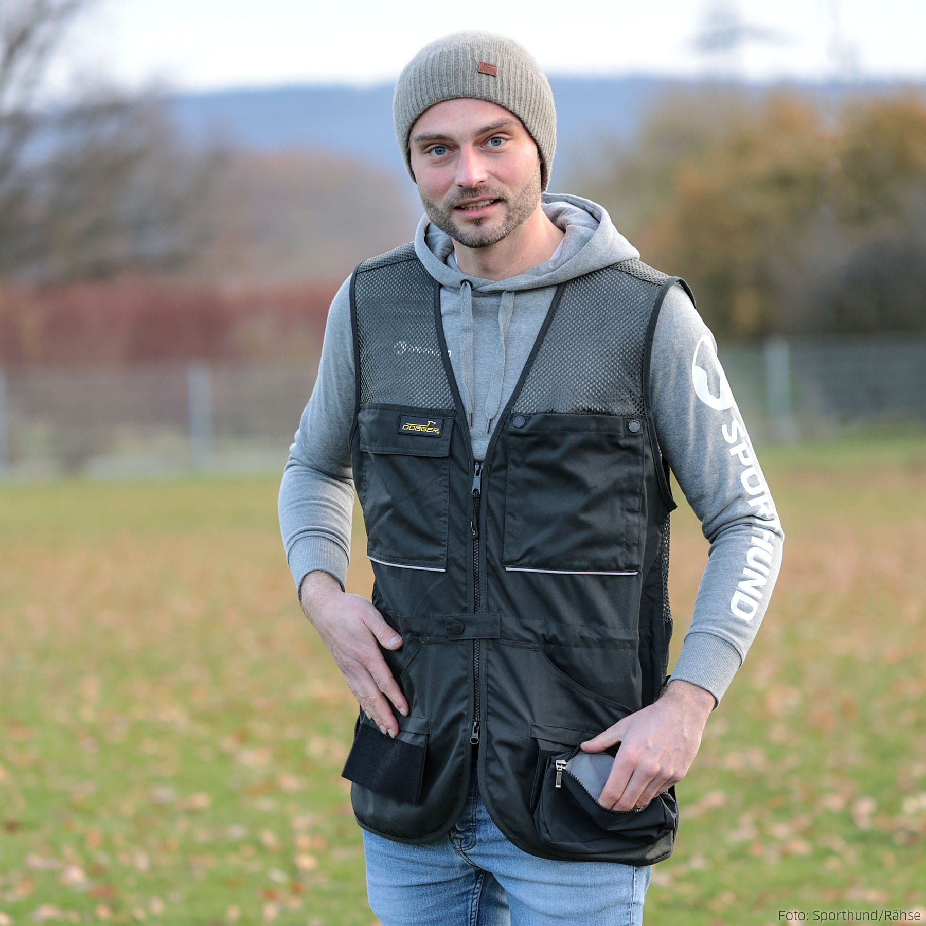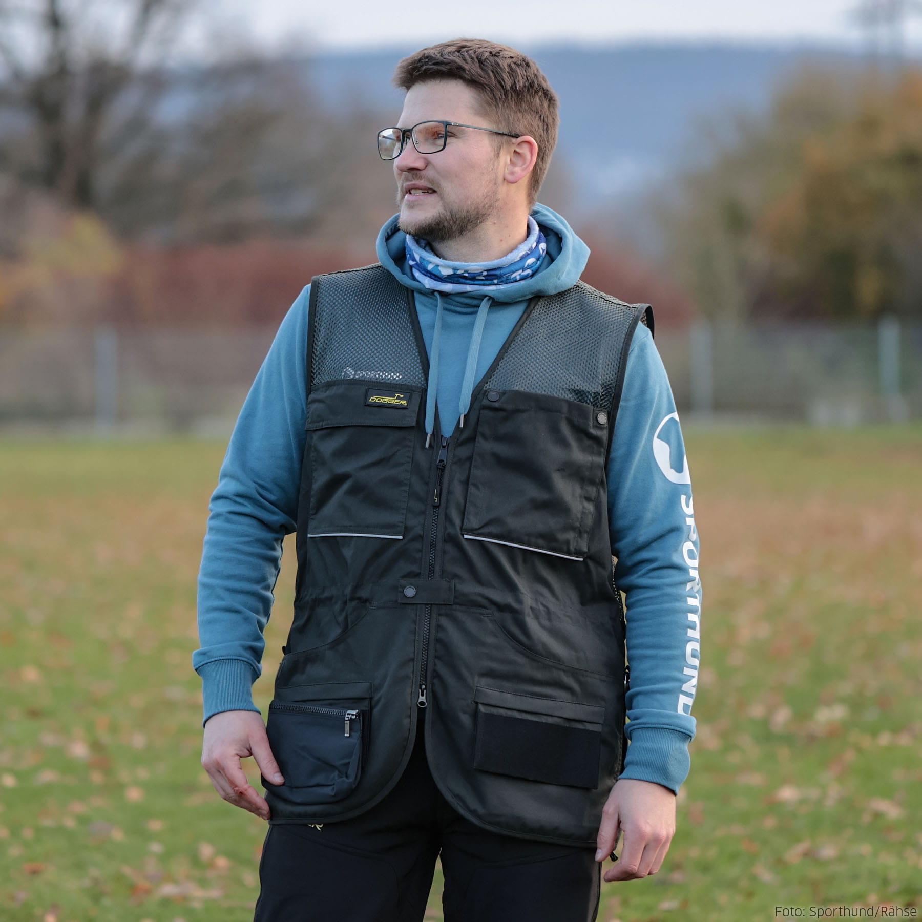 Der obere Bereich der Weste besteht vollständig aus luftdurchlässigem Mesh-Gewebe, das eine optimale Luftzirkulation ermöglicht und Hitzestau zuverlässig verhindert. Praktische Vorder- und Rückentaschen bieten großzügigen Stauraum für alles, was beim Hundesport griffbereit sein muss: Ob Zubehör, Snacks oder Trainingsutensilien – hier findet alles seinen Platz.