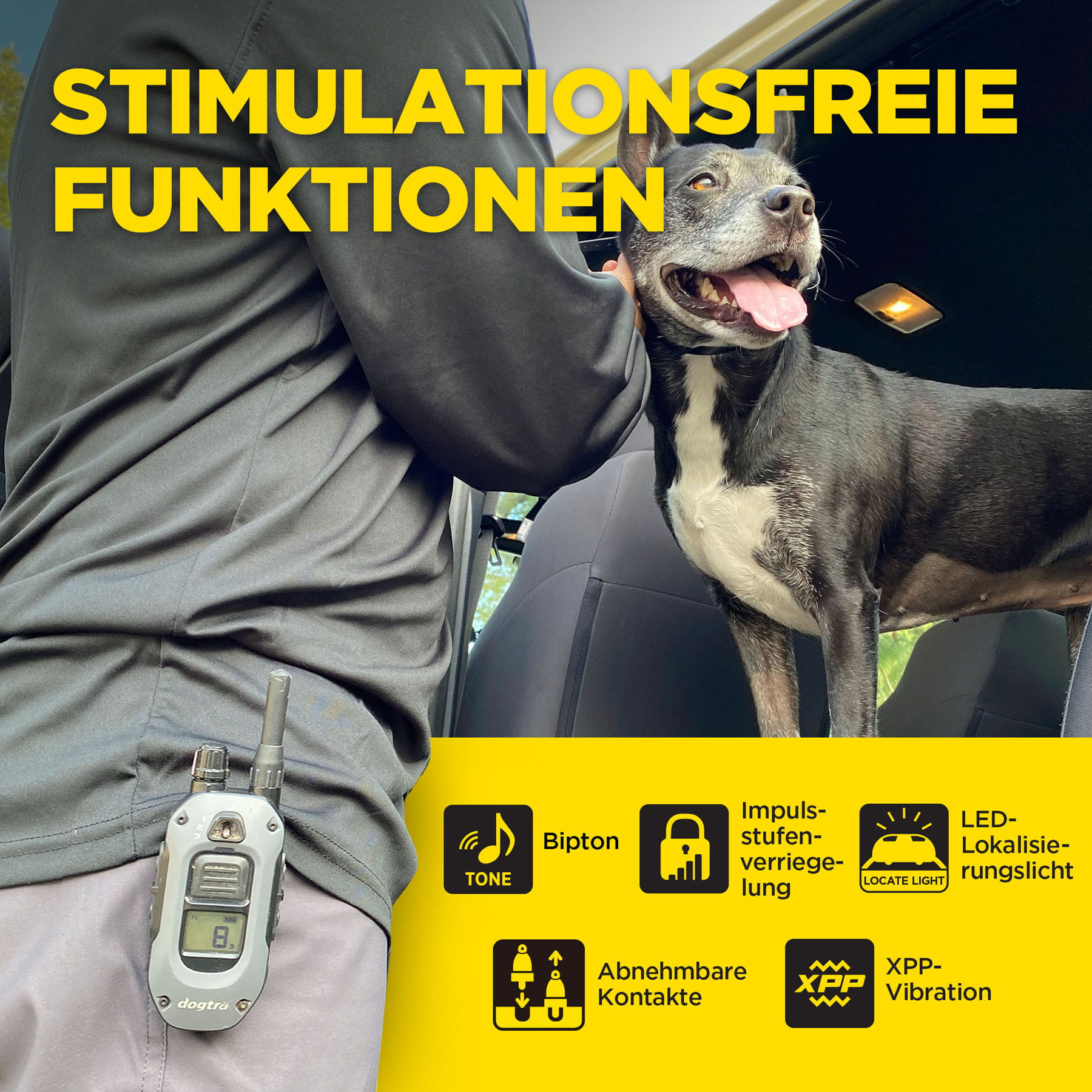 | Trainingsfunktionen: | mit Ferntrainer, Stromsignal, Tonsignal, Vibration |