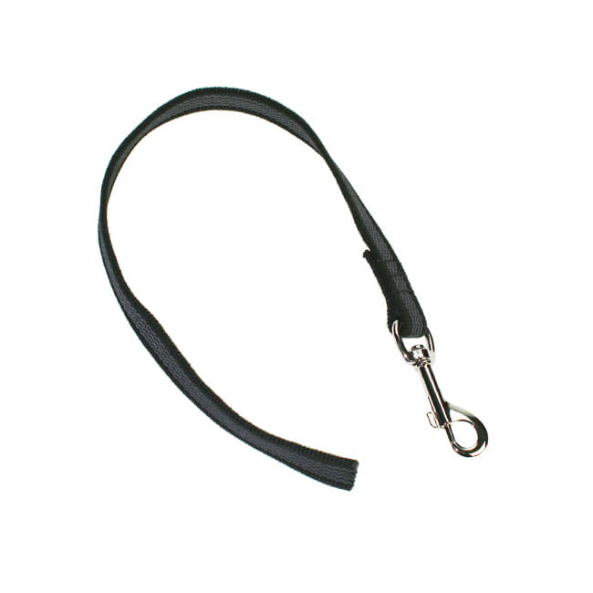In das schwarze Nylonmaterial sind graue Gummifäden eingewebt. Dadurch erhalten diese Leinen eine extrem gute Giffigkeit, auch bei feuchter Witterung. Mit bewährtem Karabinerhaken von der Firma Herm. Sprenger.