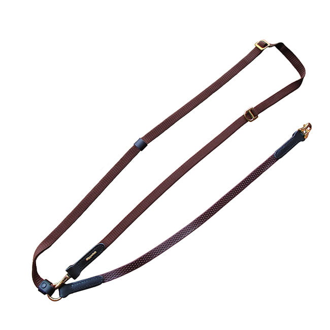 Umhängeleine GRIP von der Firma Niggeloh mit stufenlosem Verstellbereich. Stabile und hochwertige Beschlagteile aus Messing wurden für die Herstellung verwendet. Sicherer und angenehmer Griff durch gummierte Noppen.