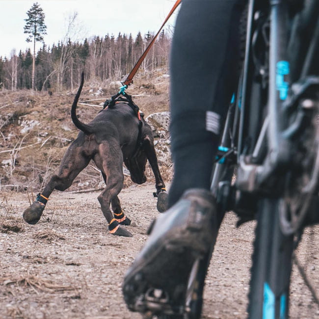 Robuste Hundebooties von der Firma Non-Stop Dogwear, die die Pfoten des Hundes vor rauhen Oberflächen, Glasscherben, Salz und heißem Asphalt schützen. Wasserabweisend, schnittfest und mit elastischem Klettband zur sicheren Befestigung. Ohne scheuernde Nähte auf der Innenseite.